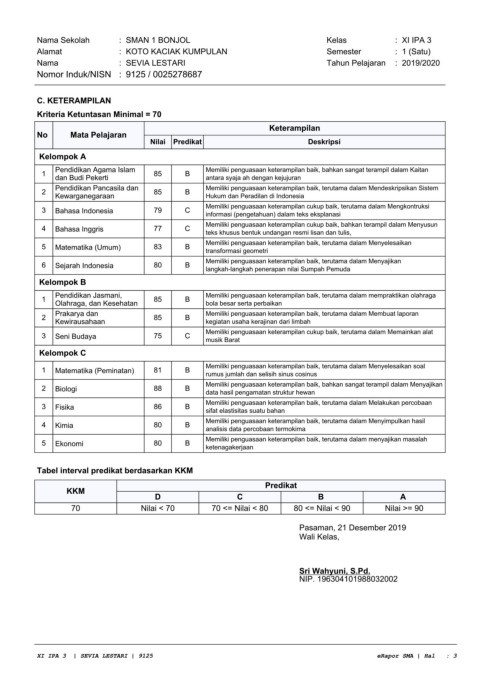 XI IPA 3 | SEVIA LESTARI | 9125 eRapor SMA | Hal : 3