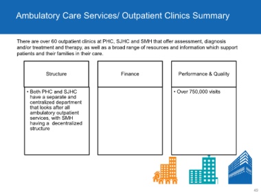 Ambulatory Care Services/ Outpatient Clinics Summary