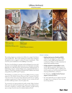 Th e existing chapel was constructed in 1884 as the campus’ fi rst library • Building Information Modeling (BIM)