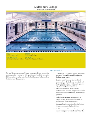 platforms, gallery seating for 600 spectators and poolside seating for and one of the top Division III swimming