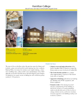Th e state-of-the-art facility triples the previous space for fi tness and • Adaptive reuse and major alterations of the