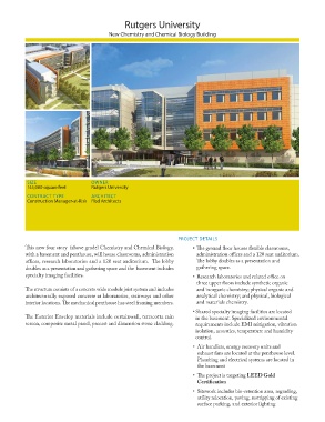 Th is new four story (above grade) Chemistry and Chemical Biology, • Th e ground fl oor houses fl exible classrooms,