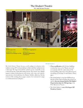 Th e Little Shubert Th eatre features a well-confi gured auditorium with • Close coordination with the base building