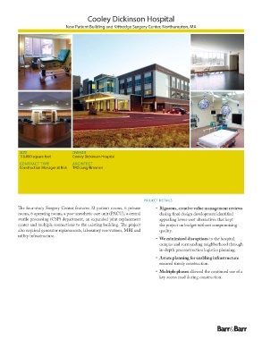 Th e four-story Surgery Center features 32 patient rooms, 6 private • Rigorous, creative value management reviews
