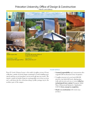 Peter B. Lewis Library, home to the multi-discipline science library • Assumed responsibility mid-construction after