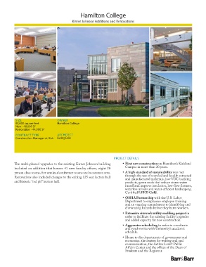 Th e multi-phased upgrades to the existing Kirner Johnson building • First new construction on Hamilton’s Kirkland