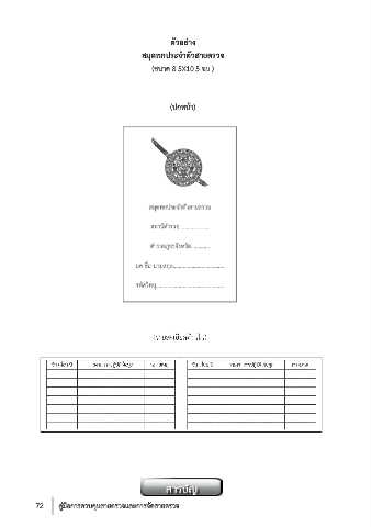 ตัวอยาง สมุดพกประจําตัวสายตรวจ (ขนาด 8.5X10.5 ซม.) (ปกหนา) 72 คูมือการควบคุมสายตรวจและการจัดสายตรวจ
