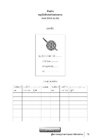 ตัวอยาง สมุดบันทึกประจํารถสายตรวจ (ขนาด 30X21 ซม./A4) (ปกหนา) คูมือการควบคุมสายตรวจและการจัดสายตรวจ 73