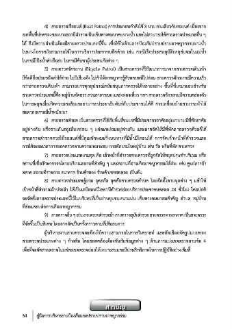 4) สายตรวจเรือยนต (Boat Patrol) การประกอบกําลังใช 3 นาย เชนเดียวกับรถยนต เนื่องจาก