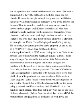 Eve’s sin, and not the other way around. The man of God who