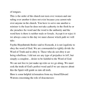 Watson concerning the role of deaconesses: