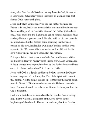 always his Son. Isaiah 9:6 does not say Jesus is God; it says he