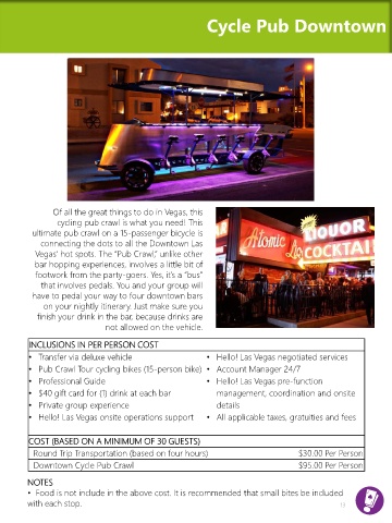 • Pub Crawl Tour cycling bikes (15-person bike) • Account Manager 24/7