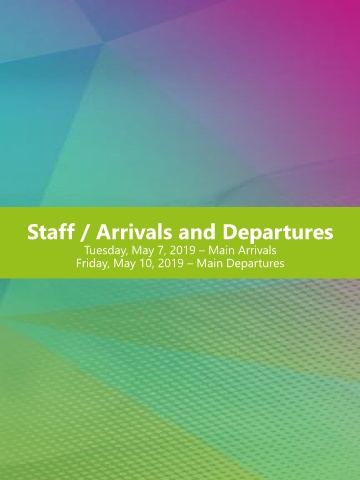 Staff / Arrivals and Departures Tuesday, May 7, 2019 – Main Arrivals Friday, May 10, 2019 – Main Departures