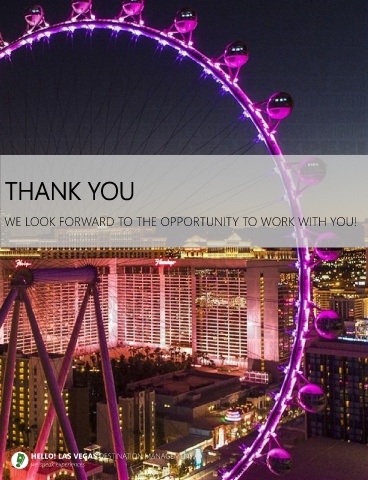THANK YOU WE LOOK FORWARD TO THE OPPORTUNITY TO WORK WITH YOU! HELLO! LAS VEGAS DESTINATION MANAGEMENT we speak experiences