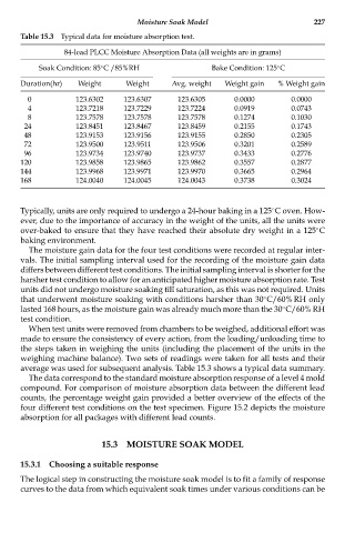Table 15.3 Typical data for moisture absorption test.