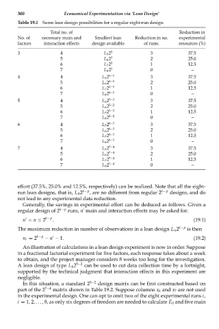 Table 19.1 Some lean design possibilities for a regular eight-run design.