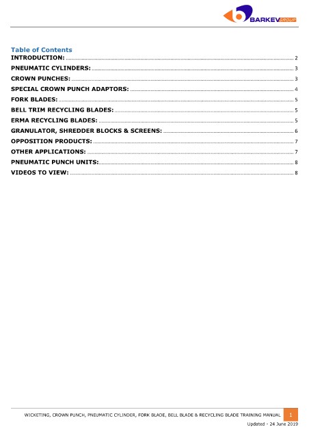 WICKETING, CROWN PUNCH, PNEUMATIC CYLINDER, FORK BLADE, BELL BLADE & RECYCLING BLADE TRAINING MANUAL 1