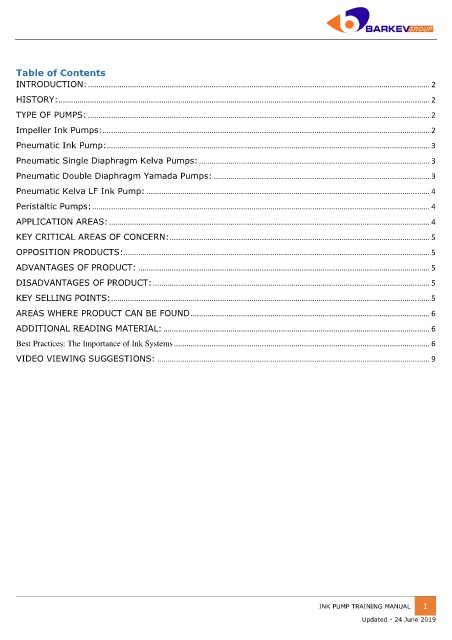 Impeller Ink Pumps: ............................................................................................................................................................ 2