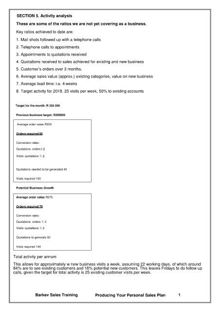 This allows for approximately w new business visits a week, assuming 22 working days, of which around