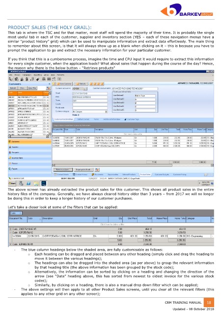 The above screen has already extracted the product sales for this customer. This shows all product sales in the entire