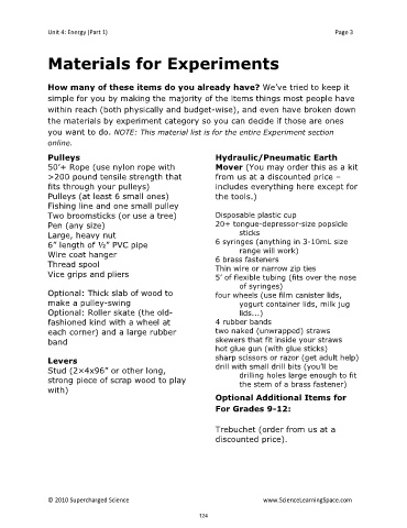 you want to do. NOTE: This material list is for the entire Experiment section