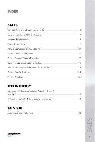 What is Cassini, and how does it work? 6 Cassini Workflow & FLACS Integration 8 What to do after set up? 11 Device Comparisons 13 How to use Cassini for IOL planning 24 Cassini Future Developments 26 Cassini Business Case & Examples 28 Cassini Leads Qualification Guidelines 39 How to trade in your old Cassini for a new one 41 Cassini Care & Price List 43 Cassini Academy 48