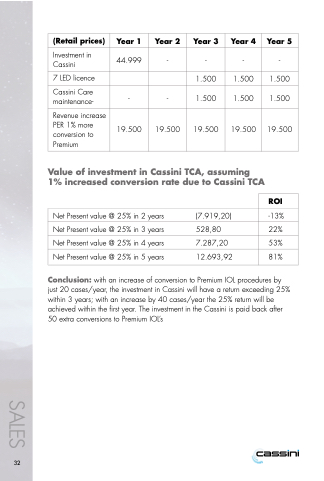 Conclusion: with an increase of conversion to Premium IOL procedures by just 20 cases/year, the investment in Cassini will have a return exceeding 25% within 3 years; with an increase by 40 cases/year the 25% return will be achieved within the first year. The investment in the Cassini is paid back after 50 extra conversions to Premium IOL’s
