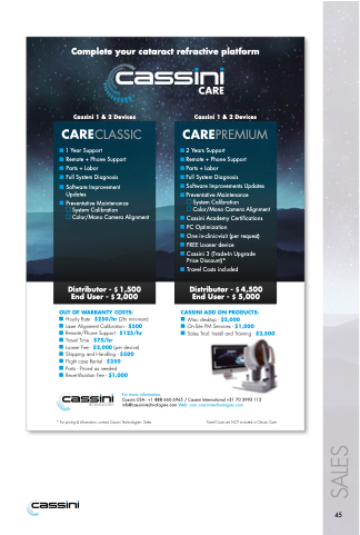 * For pricing & information, contact Cassini Technologies - Sales Travel Costs are NOT included in Classic Care