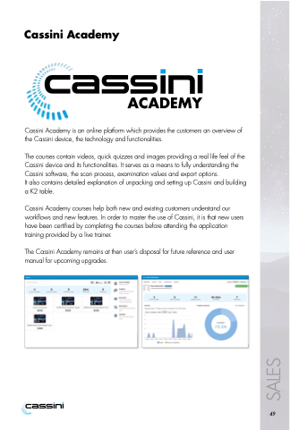 The courses contain videos, quick quizzes and images providing a real life feel of the Cassini device and its functionalities. It serves as a means to fully understanding the Cassini software, the scan process, examination values and export options.
