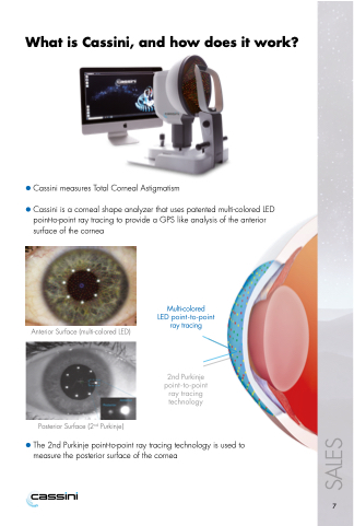 l Cassini is a corneal shape analyzer that uses patented multi-colored LED point-to-point ray tracing to provide a GPS like analysis of the anterior surface of the cornea