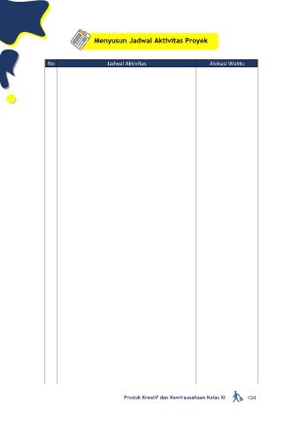 Menyusun Jadwal Aktivitas Proyek No Jadwal Aktivitas Alokasi Waktu Produk Kreatif dan Kewirausahaan Kelas XI 104