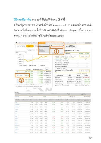 สารทุน > ราคาหลักทรัพย์ จะได้รายชื่อหุ้นกลุ่ม SET100