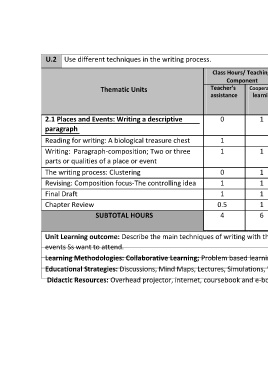 2.1 Places and Events: Writing a descriptive 0 1 0 0 0 Workshops