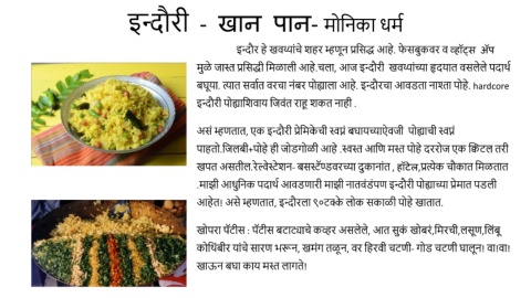 इन्दौर हे खवय्याच शहर यॎहणन प्रवसद्ध आह. फसबकवर व व्हॉट्स ॲप