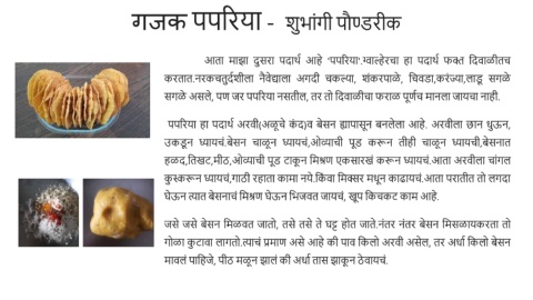 सगळ असल, पण जर पपररर्ा नसतील, तर तो वदवाळीचा फराळ पणच मानला जार्चा नाही.