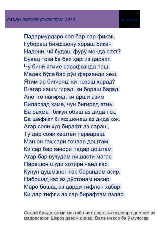 САЪДИ ШЕРОЗИ (ГУЛИСТОН 2019 февраля,