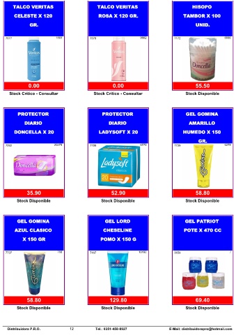 Distribuidora P.R.O. 12 Tel.: 0351-458-8927 E-Mail: distribuidorapro@hotmail.com