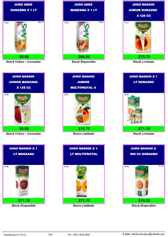 Distribuidora P.R.O. 103 Tel.: 0351-458-8927 E-Mail: distribuidorapro@hotmail.com