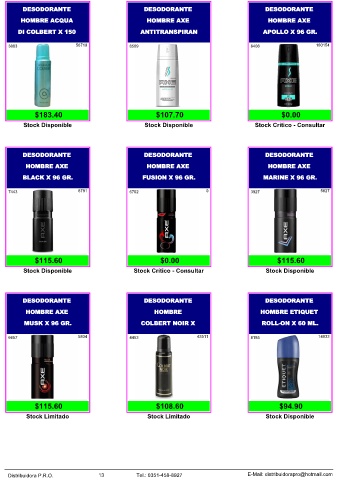 Distribuidora P.R.O. 13 Tel.: 0351-458-8927 E-Mail: distribuidorapro@hotmail.com