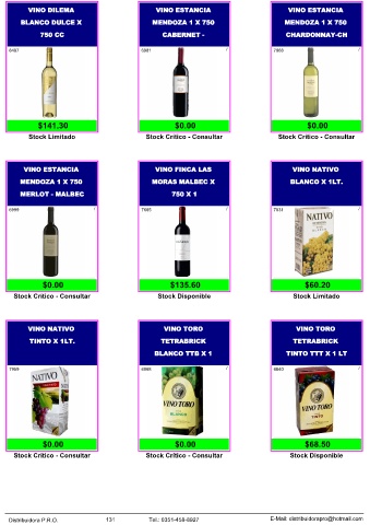 Distribuidora P.R.O. 131 Tel.: 0351-458-8927 E-Mail: distribuidorapro@hotmail.com