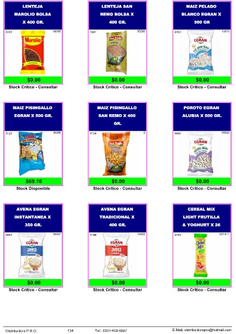 Distribuidora P.R.O. 134 Tel.: 0351-458-8927 E-Mail: distribuidorapro@hotmail.com
