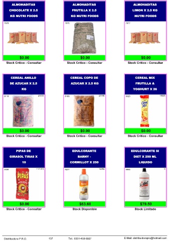 Distribuidora P.R.O. 137 Tel.: 0351-458-8927 E-Mail: distribuidorapro@hotmail.com
