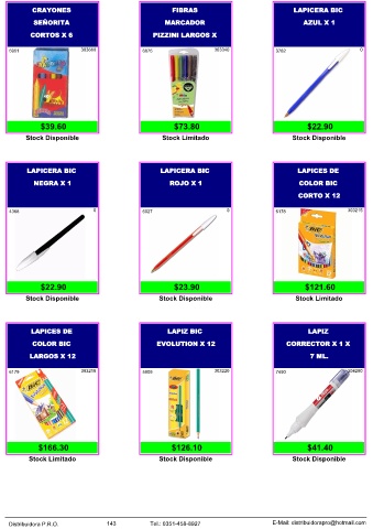 Distribuidora P.R.O. 143 Tel.: 0351-458-8927 E-Mail: distribuidorapro@hotmail.com