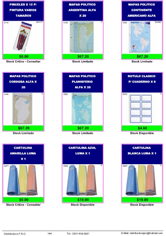 Distribuidora P.R.O. 144 Tel.: 0351-458-8927 E-Mail: distribuidorapro@hotmail.com