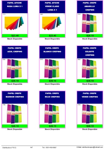 Distribuidora P.R.O. 147 Tel.: 0351-458-8927 E-Mail: distribuidorapro@hotmail.com