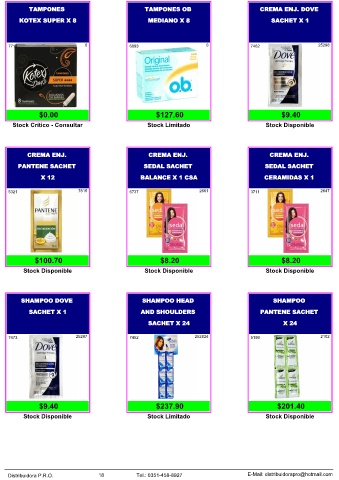 Distribuidora P.R.O. 18 Tel.: 0351-458-8927 E-Mail: distribuidorapro@hotmail.com
