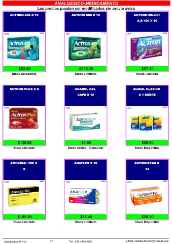 Distribuidora P.R.O. 27 Tel.: 0351-458-8927 E-Mail: distribuidorapro@hotmail.com