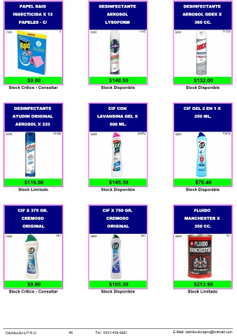 Distribuidora P.R.O. 46 Tel.: 0351-458-8927 E-Mail: distribuidorapro@hotmail.com
