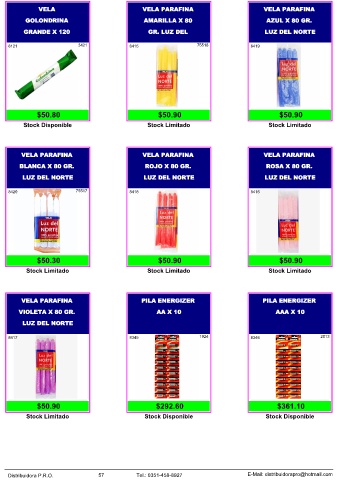 Distribuidora P.R.O. 57 Tel.: 0351-458-8927 E-Mail: distribuidorapro@hotmail.com
